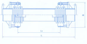 該膨脹節(jié)由兩個十字銷軸,用長的中間拉板組合而成,它能吸收任意平面內(nèi)的橫向位移,它們的鉸鏈與十字銷軸具有承受內(nèi)壓推力能力